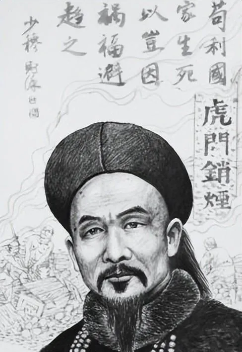 画里这位是禁烟名臣的形象,眉目沉着,背后卷起的烟火和大字招牌一并压来,爷爷指着说,那场硬仗是把毒根子往外拔,可惜后来世道更乱了。