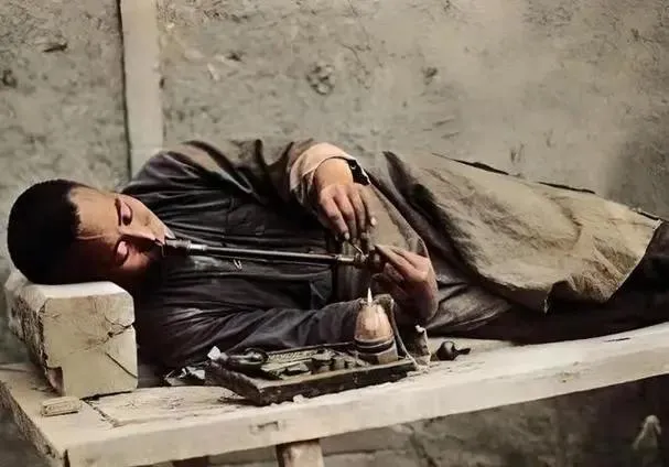 这几张照片不用多解释,长烟枪横着躺着,炭火把铜炉子烤得发亮,有的笑着,有的像枯枝一身皮包骨,叔叔看得直摇头,说那会儿一个人一口气,把一家子的日子都败光了,越享受越陷进去,醒来只剩空壳。