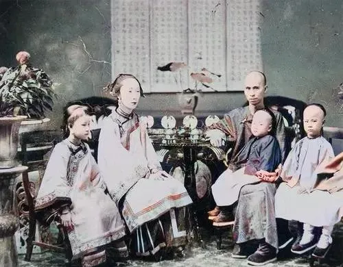 这张最普通也最难忘,宽大的对襟长衫显得人更瘦,砖墙做背景,孩子靠在案上挤出笑,旁边的母亲眼神有点怯生生的,以前拍照少,镜头对过来,心口都要咚咚直跳。
