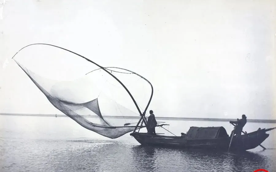 这个大翅膀叫扳罾,四根长竹作骨,方网展开像一面会呼吸的窗纱,船头一人握杆探出去,船尾一人把舵稳住,等网影沉下水,鱼一不留神闯进去,手一提杆,水珠子“刷”地成串往下掉,舱里还放着抄网和竹篓,爷爷说提一次不见鱼就再等一会儿,心急吃不得热豆腐,现在电拖网一搂就是一大片,那时靠的是手上劲儿和水性。