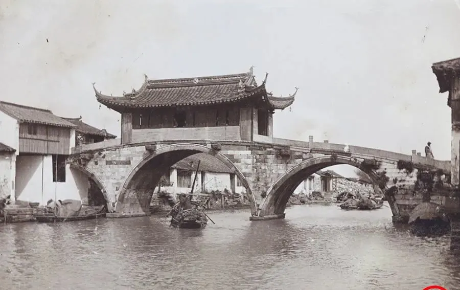 这个精巧的桥叫廊桥,石拱三连,桥面上盖着飞檐小屋,雨天能躲雨,晴天能歇脚,石头被船梢磨得发亮,桥洞里穿梭着乌篷,船夫把篙往水里一点,船影就潜了过去,外公以前带我去江南,说廊桥像一段会呼吸的走廊,早上潮气往上冒,晚上灯影从瓦缝漏下,现在高架一拉就是几十里,可像这样能安安静静待人的桥,不多见了。
