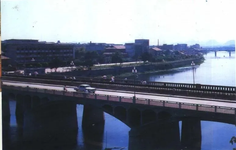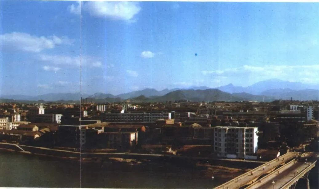 我翻过一页,场景换到了秀江边。江水想来是比现在丰沛些的,河滩也宽。照片是夏日,近处几个半大的少年,穿着裤衩,皮肤晒得黝黑发亮,正从一块大石头上往水里跳,身体在空中舒展开,带着一股不管不顾的野性快乐。远处,依稀可见老的秀江桥,是那种带着圆拱的、敦实的石桥,桥上的栏杆旁倚着看风景的人,成了小小的剪影。江对岸,没有现在这般密集的高楼,只有一片疏朗的灰瓦屋顶,和几株高大的苦楝树,再远处,便是绵延的、淡青色的山峦轮廓。那时的宜春城,仿佛一个偎在山水怀抱里的、安恬的梦。空气里,应该混合着江水微腥的水汽、岸边青草被晒出的香味,还有从某个巷口飘来的、煤球炉子生火时特有的烟火气。