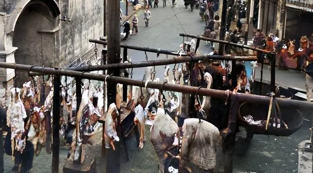 这排横杆上挂的全是肉,往上风一吹,油光带亮,卖肉的吆喝两声,人就来了,以前吃顿肉要攒票,现在挑花了眼还嫌肥。