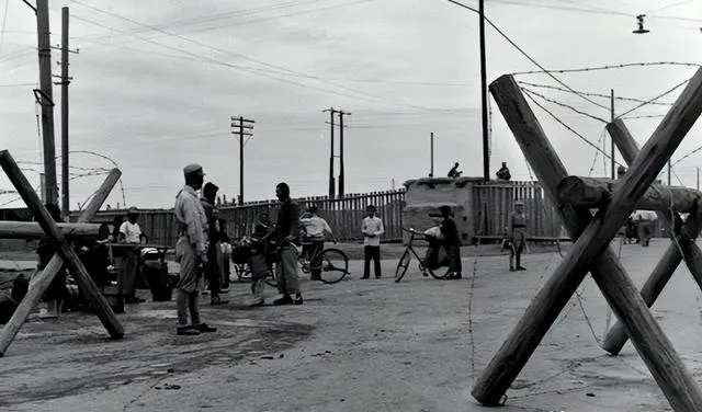 这个交叉摆着的是拒马,木头粗得抱不过来,外面绕着铁丝,车马来了得停,那时没有钢筋水泥的防线,靠的就是简陋却顶用的家伙。