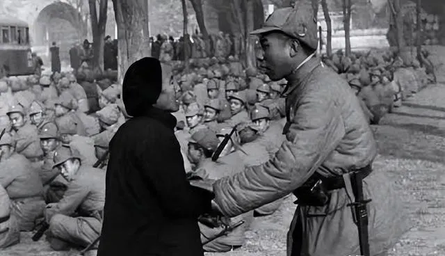 这个木刀背在背上,小姑娘向前敬礼,脸上泥点子没擦干净,该上学的年纪先学站岗,时代推着人长大。