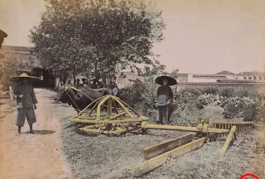 这张在田边摆着的大木架叫龙骨水车,弯月似的齿板一节一节,牛套上轭慢悠悠走,木齿就带着斗子翻水上来,爷爷说那时候浇地全靠它,一圈圈走得人犯困也得转,现在电泵一按,水到沟头都不用喊人。