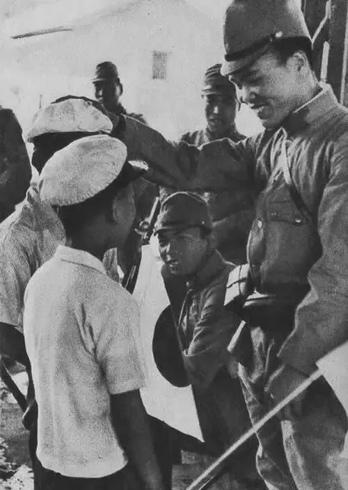 照片里士兵弯下腰和孩子说话,孩子背着小书包,手里还拎着旗子,脸被晒得黑黑的,旁边几个人坐着,表情挂在半空,不笑也不怒,战场边的孩子学会最早的是沉默,等他长大再回头看,这一幕多半不愿多说。