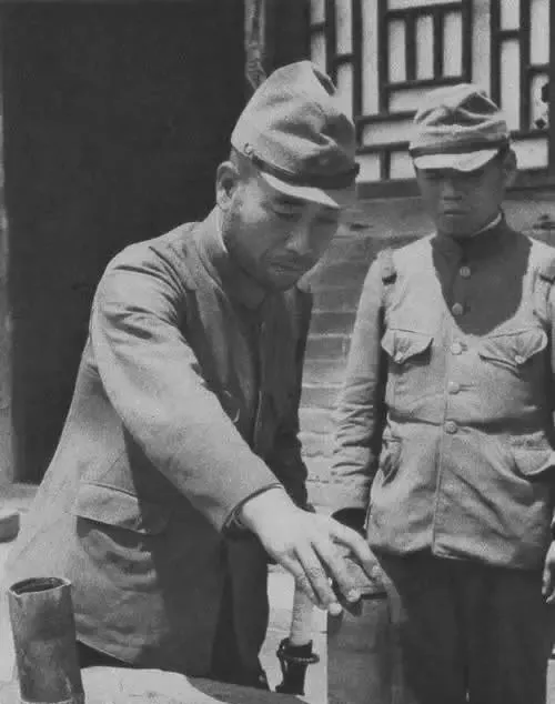 桌面上摆着弹壳和榴霰弹,男人低着头伸手比划,指尖在金属口沿上一点,身后的人抿着嘴看,爷爷说那玩意儿落在院里,不是爆,就是把人吓个半死,照片里看不出声音,可谁都知道它有多响。