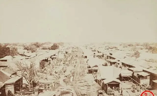 这个长条的景叫大道俯拍,泥路正中压出车辙,两边的棚铺连成一线,树干细细的,影子被晒短了,风从尽头往这边吹,扬着灰,听得见木轮吱呀,那时候的城市是用脚量出来的,现在抬手机一叫车,几里路一下就没了。