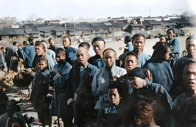 这个人堆是为啥,图里就能看出来,新鲜事儿到了,大家伙儿挤成一团,男的女的老的小的都撇着嘴往前探,眼睛亮亮的,风一吹,青布棉褂被面微微起褶,孩子被大人托着,硬要往里看一眼。