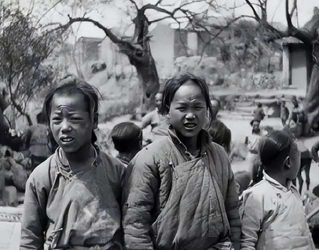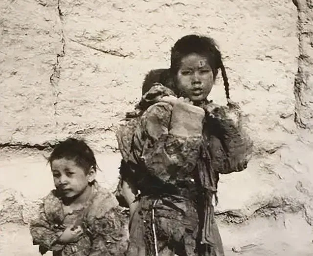这几位小家伙没啥名字好叫,破棉袄上结着结子,脸颊有风裂口,肩上的妹妹睡得正沉,哥哥下意识护着,她们没摆造型,镜头一来只会眯着眼,阳光太白,现实更硬。