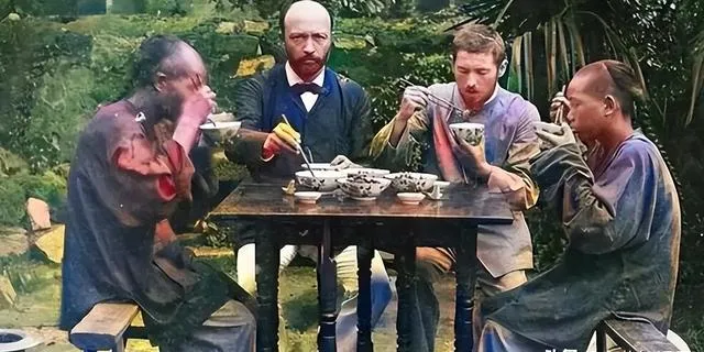 这张桌子上最尴尬的是两根筷子,洋人握得直愣愣,米粒沿着筷背往下滑,他抬眼的那刻,像在问自己怎么坐在这桌,另一头的老哥低着头,碗口冒热气,吃饭的人各有心思,桌面却只剩清汤寡水。