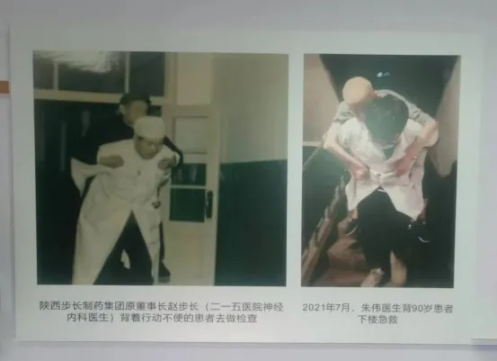 在咸阳二一五医院一楼过道的显眼位置,有几张赵步长先生的宣传照片。这面承载着历史记忆的展示墙,不仅记录着二一五医院的发展足迹,更彰显出赵步长先生的医者仁心在二一五医院的延续和传承。