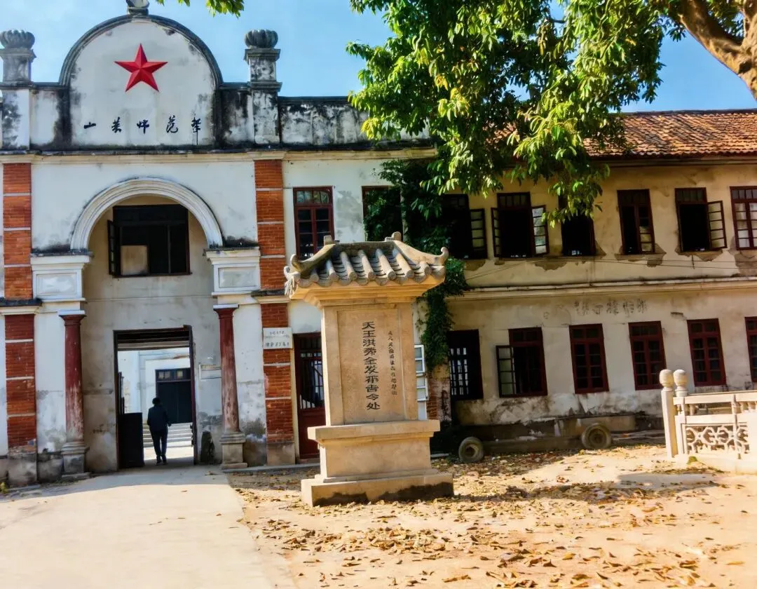 蒙山县的历史坐标因太平天国运动而深刻。1851年,洪秀全在永安州(今蒙山)颁布封王诏令,确立政权建制,留下“天王洪秀全发布诏令处”等珍贵遗迹。老照片中“蒙山师范学校”的拱门上,斑驳的“五角星”与石碑相映,诉说着这片土地从晚清风云到近代教育的变迁。古城墙的残垣、民国骑楼的飞檐,无不镌刻着岁月的痕迹。