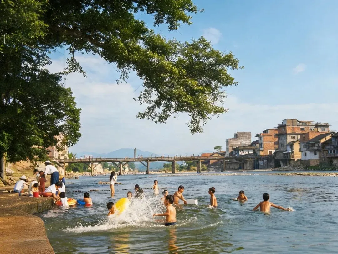 湄江河穿城而过,既是母亲河,也是世代蒙山人的生活舞台。老照片中,孩童在清澈的河水中嬉戏,古桥横跨碧波,岸边吊脚楼与稻田相映成趣。大瑶山余脉在此化作层层叠翠,森林覆盖率超80%的生态屏障,让这里成为“天然氧吧”。从高空俯瞰,青瓦白墙的村落散落于绿野,传统与现代交融的城镇格局,勾勒出人与自然和谐共生的图景。