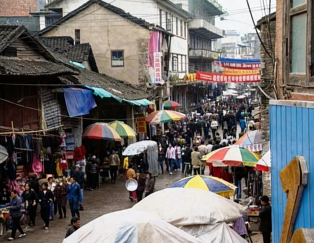 中心市场的老照片定格了上世纪的热闹:彩色遮阳伞下,商贩的吆喝与自行车铃声交织,身着蓝布褂的行人穿梭其间。而如今,这里仍是县城的脉搏所在,只是摊位上多了电商快递的包裹,老一辈的手艺与新生代的创意碰撞出别样活力。电影院前聚集的人群、庆祝社会主义改造胜利的游行队伍老照片,见证着蒙山从农业小城到文旅新地标的蜕变。