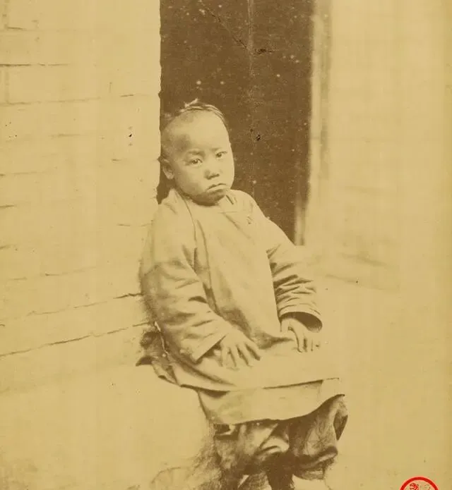 这个小孩的表情你一看就懂,嘴角往下撇,眼睛没神,靠着门框坐着,衣摆压出一道折口,爷爷说那会儿孩子穿衣讲实用,粗布缎面混着补丁,袖口宽,便于卷起来干活,哪像现在童装一个比一个花哨。