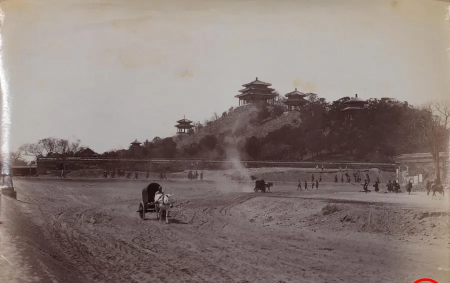 这个高头叫景山,五座亭子像五枚簪子插在山脊上,万春亭正居中,山外的路却是灰得很,风一起就扬,拉着毛驴的小车在土路上蹭蹭往前,孩童追着车尾跑,那时候北京的风一吹就是沙子味,现在城里绿化一片,走回头路的人不多了。