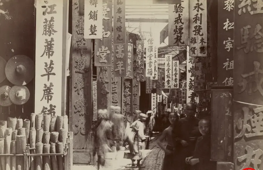 这条白纸上写的是“bonne anne”,意思是新年好,这玩意儿就叫洋祝词,黑墨粗笔一笔一划立在门边,小孩靠着门槛站着,棉袄毛边露着白绒,半大不小的年纪,可能家里有人给洋行干活,过年也学着贴个新鲜的,时代风吹进门框里,就从这一条纸开始。