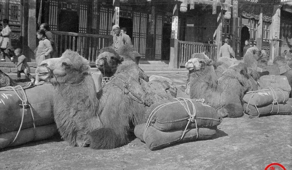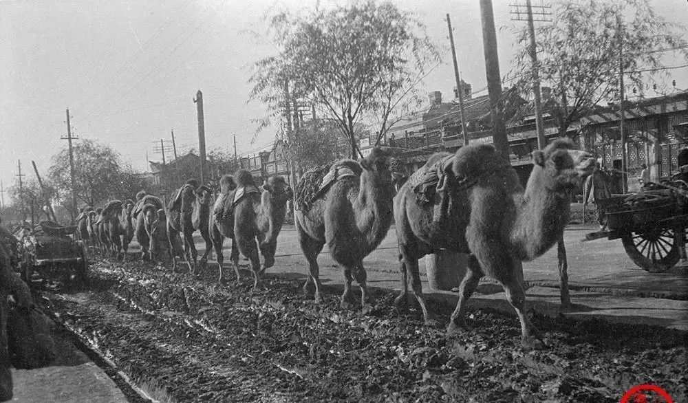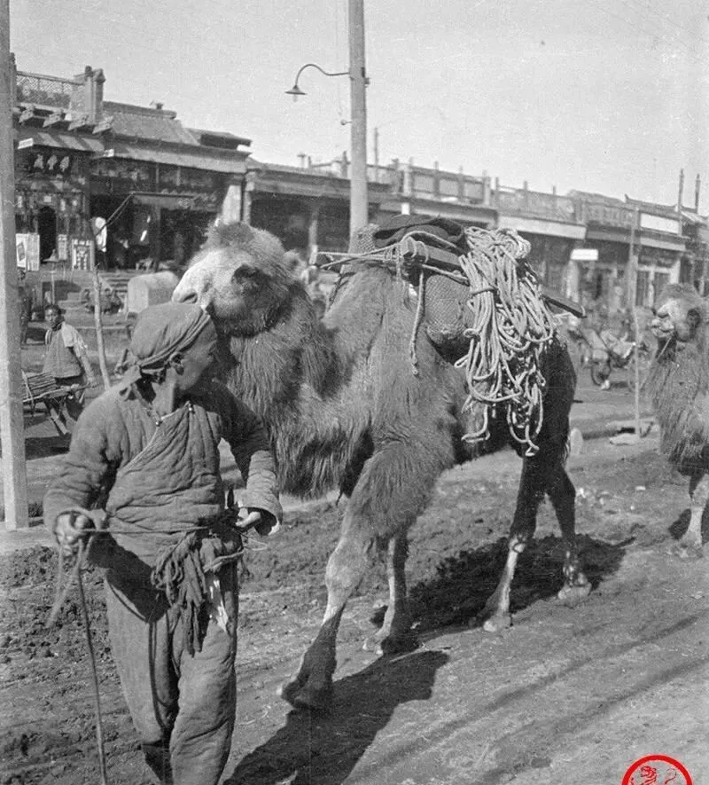 百年老照片:老北京街头随处可见骆驼,人们生活离不了。