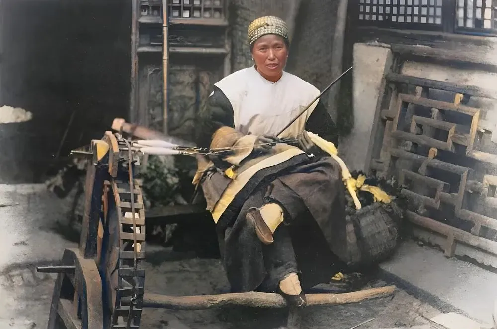 这个转得吱吱叫的木家伙叫纺车,粗齿轮一圈圈咬着,轴上一撮麻线拉得细如发丝,妇人一手抽、一手捻、脚下轻踩木板,线走得匀,筐里堆着黄绵绵的原料,风一吹毛絮飘,小时候我在屋檐下打瞌睡就被这声音催的,可,真要学起来手指头全是倒刺,奶奶边干边叮嘱别让线断,断了要吐口唾沫续上,听着土,可好使。
