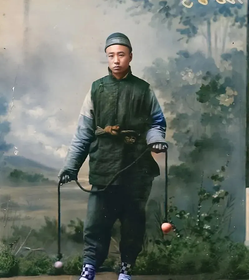 年轻人手里这条绳索两头各系一个木球,这玩意儿我们那儿叫抖绳球,先把两个球拧反向转起来,等到绳子被拉直,再靠手腕轻轻抖着续速,动作看着不咋地,劲儿全在腕子里,街边一响,孩子们就围上去了,妈妈会拎着我耳朵说别跟着学,扭坏了手还得抹跌打酒,艺人笑一笑,手下那两个小球还在呼噜噜地转。