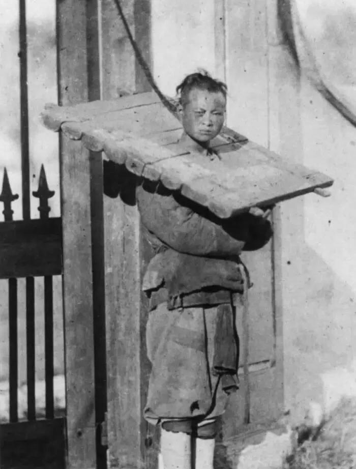 这个沉物就叫枷板,厚木条一字排开,前后两块用榫卯合住脖颈,绳子从一角系到门柱上,人只能斜着站,奶奶说轻枷二十多斤,重枷三十多斤,站一会儿肩颈就麻,冬天风一灌,木头比铁还冷,这不是戏文,是活生生的疼。