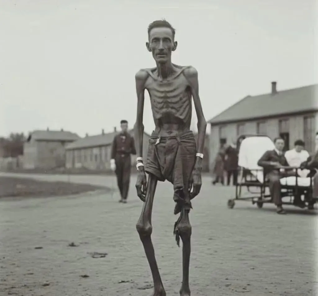 1945年4月,当美国士兵进入米特尔鲍-多拉集中营时,他们遇到了一位幸存者,他的出现给他们留下了不可磨灭的印象——这个人如此脆弱,以至于他的影子似乎比他的身体更有重量。出于对尊严的本能,他看到他们时试图站起来。他的双腿瘦弱无力,肋骨在皮肤下清晰可见,这是他长期忍受远超人类极限的饥饿的证明。他站起来时,膝盖突然无力,仿佛失去了知觉。尽管他体重几乎与孩童无异,却背负著多年来蓄意虐待的沉重负担。最令士兵们心碎的并非他的软弱,而是他的温柔。他轻声向医护人员道歉,说自己成了他们的"负担",甚至连呼吸稍慢都感到愧疚。一位护士跪在他身边安慰他,告诉他,他能活下来本身就是一个奇迹--他的身体战胜了那个一心想要抹杀他的世界。解放后他只活了几个星期,但他死得自由,给士兵们留下了永生难忘的记忆。