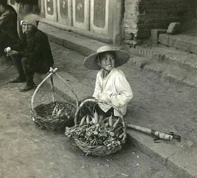 这个肩上挑着竹担的,就是街口卖菜的老哥,斗笠压得低低的,嘴角却挂着笑,筐里零零碎碎的菜叶子挤一堆,边上靠着一根秤,手起手落就能掂出分量,以前买菜讲秤砣,现在手机一扫就完事儿了,秤星子也没人会看了。