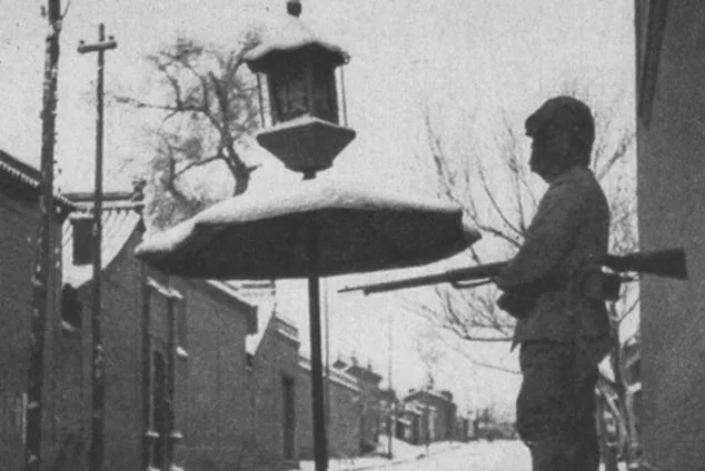 这两张都是冷,灯帽上落了雪,枪身上结着白霜,脚底板吱呀吱呀踩在冰上,另一处人围着火盆子烤手,烟一缕缕往上走,脸被烤得通红,手心还是冷,冬天的北风不讲理,往衣缝里直钻。