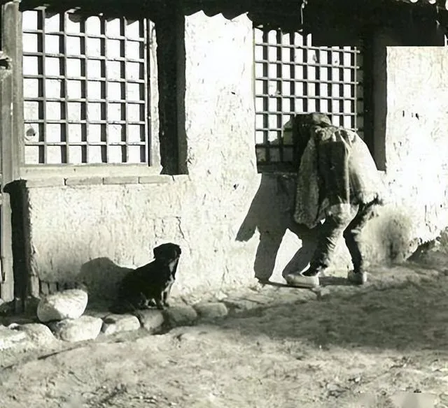这个场景可亲,泥土墙、方格窗、檐下影,墙根蹲着只小黑狗,耳朵竖着,旁边有人探着身往窗里看,像在喊人,又像在打听消息,这种乡下屋子的味儿,我一闻就想起潮土晒干后的那股土腥甜。