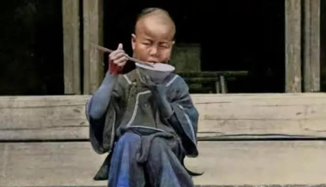 这个正埋头吃的孩子叫扒饭小子,碗比脸大,筷子攥得紧,连镜头来了都不抬眼,那会儿讲究不浪费,家里人常说一句,碗里有,心里才踏实。