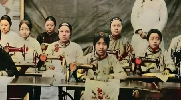 这一排机器叫缝纫机,蝴蝶牌的金字漆还亮,女孩们腰板直直,脚下一起一落,梭子滴溜溜转,奶奶讲过头一次上手,踏板没跟住,线就打成鸟窝,现在买衣服点两下手机,谁还会踩这玩意儿。