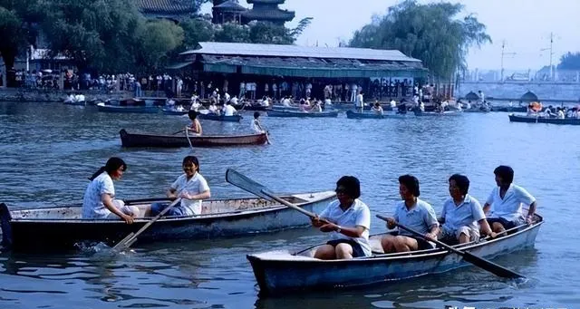 这两张水面开阔的,就是公园脚踏船和手划船,木桨入水“叮咚叮咚”,不讲究计时,十五二十分钟,遇上看管的大爷心好,再多划一圈也没人催,岸边还摆着照相摊,拍一套黑白相,挑你最精神的那张。