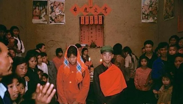 这场面就是院里成亲,红条幅一挂,蜡烛一亮,亲戚朋友把屋里屋外站满,新娘羞怯,新郎直冒汗,大家笑着起哄,礼不多,祝福多。