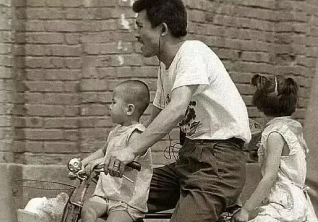 这张你再看,父亲耳边的耳塞细得跟发丝似的,线顺着脖颈掉到衣兜里,小人儿坐横梁上好奇地望他,妈妈在后座拍拍他的背,别光顾着听歌,前头坑呢。