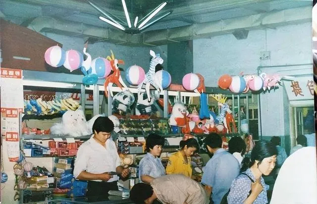 这叫小卖部,柜台后悬着气球和纸玩具,台面上是算盘、糖块和电池,阿姨低头找零钱,砰砰打珠子的手速极快,孩子踮脚看着,心里只惦记那只斑马。