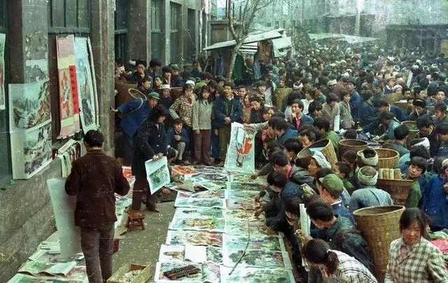这就是年画摊,红的绿的铺满地,谁家新房谁家娃满月,都是要拎两张回去的,摊主一边吆喝一边卷画轴,纸边儿一卷一弹,利索。