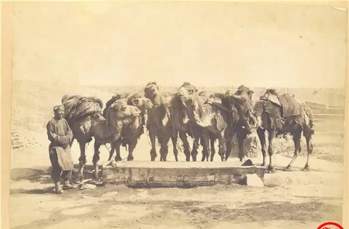 这个场面叫驼队解渴,几只骆驼把嘴都伸到石槽里,皮毛成团结块,背上驮具松松垮垮,身后地平线拖得远远的,赶驼人站一边歇气,手里攥着缰绳不松开,爷爷说从前北地拉货全靠它,慢是慢,能抗造,现在你想见一回骆驼,得去动物园转一圈。