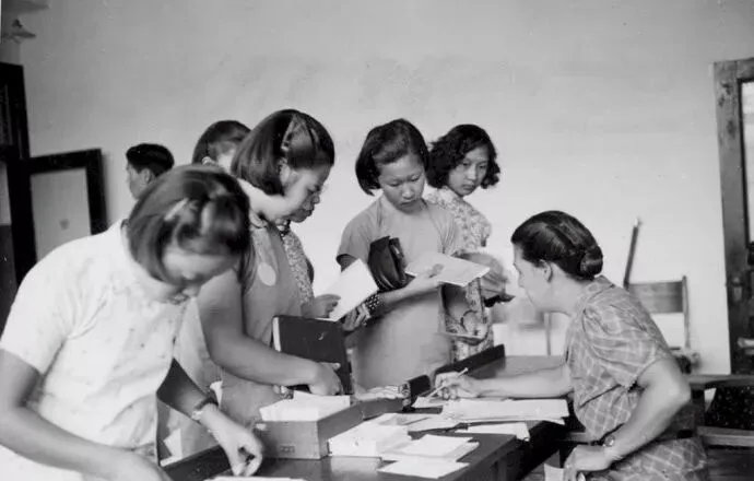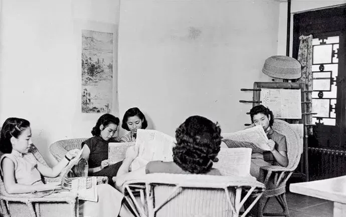 老照片:民国女大学生的校园生活,身着旗袍气质迷人。