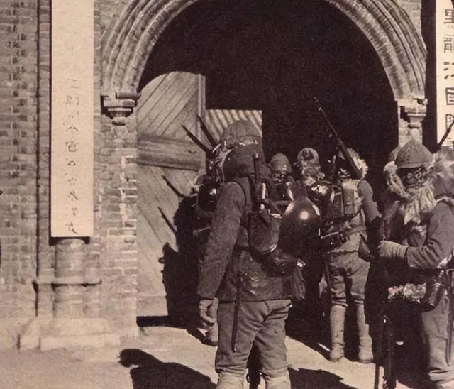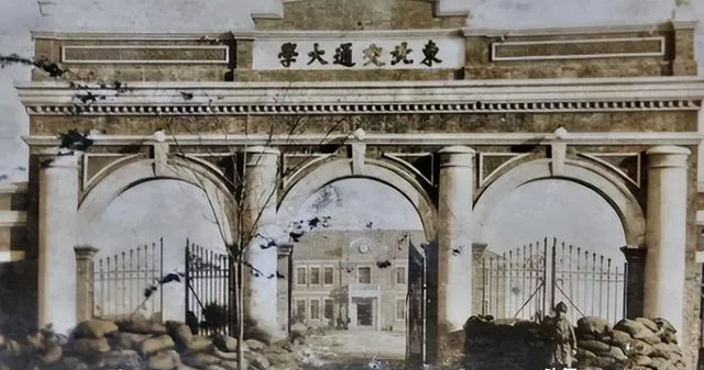 这个牌楼写着校名,三拱门粗壮,门里垒着沙袋,铁门半掩着,风从缝里钻过去,卷动落叶,读书和打仗就隔着这么一层铁。