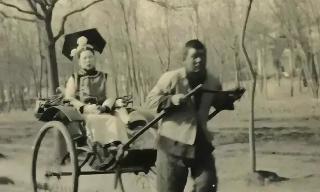 这个叫黄包车,前面人弓着背,后面人撑着伞,车辕磨得发亮,辘轳一转地皮就颤,城里路窄,车夫的喘气声比铃铛响。