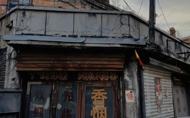 这块招牌写着烟酒副食,玻璃上花纹脱了皮,铁卷帘半拉着,门口电线像麻绳一样打结,店里有股子潮味,推门吱呀一声就穿心。