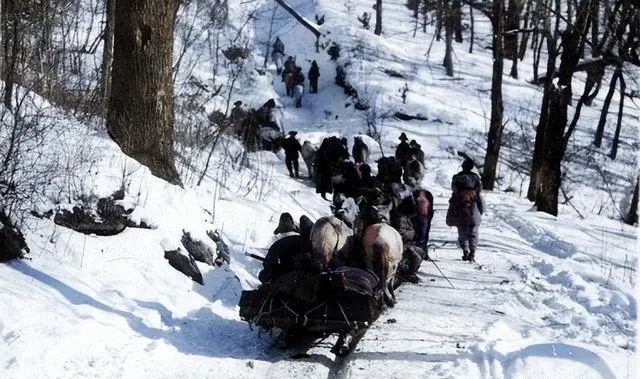 这列马爬犁顺着山沟往上蹭,前面开路的人手里拄杆子,后面压橇的人脚底冒烟,雪吱吱叫,脸被冷风抽得通红,回家能换一袋面。