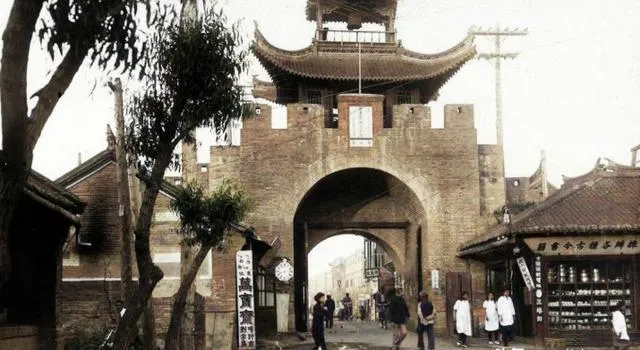 门楼上层叠着檐角,木匾晃,穿门是主街,行脚的挑担子匆匆,药铺酒肆一水儿的旧字样,抬头一看,天色就要变。