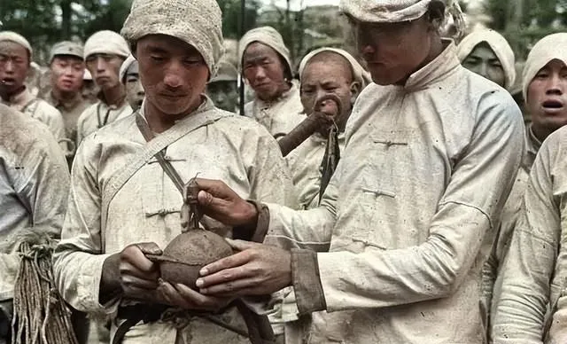 这几个围蹲着擦枪,绑腿缠得紧,旁边的小孩袖口黑得发亮,问他们怕不怕,老兵抬眼说,怕,怕也得上。