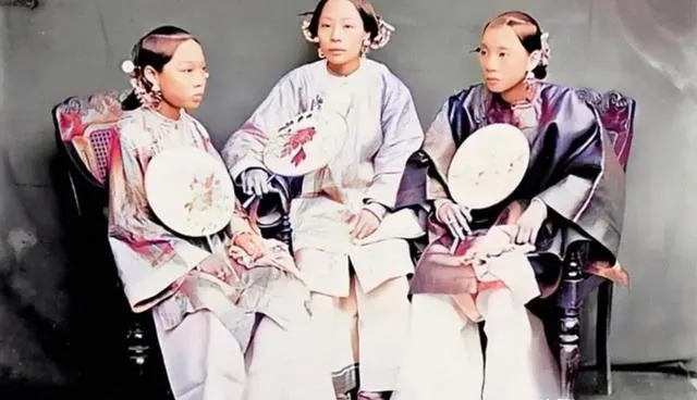 这个房里的三位是小妾,团扇遮着半面,衣料鲜亮,姿势却差不多,往前稍微探着身,像等主子叫名,外婆说有的妾被买来时连姓氏都不问,屋里一排坐着,笑要一样,话要少说。