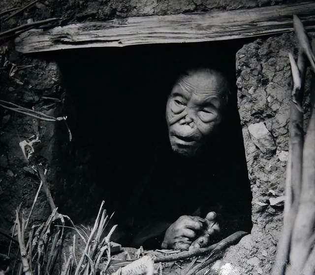 这个黑洞洞的是临时挖的土洞,老人探出半张脸,手上全是沟壑,旁边几根柴棒子压着洞口当门栓,听着风一过,沙就往里掉,谁敢咳嗽,怕把“屋顶”咳塌了。
