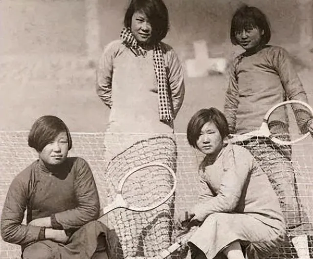 图中这玩意儿叫木柄网球拍,拍圈粗粗的,线密得像晒网,山东一所师范的合影就这样定格了,笑容里有点羞涩,也有点倔强,说白了就是想玩儿个像样的运动,哪怕鞋上都是土。