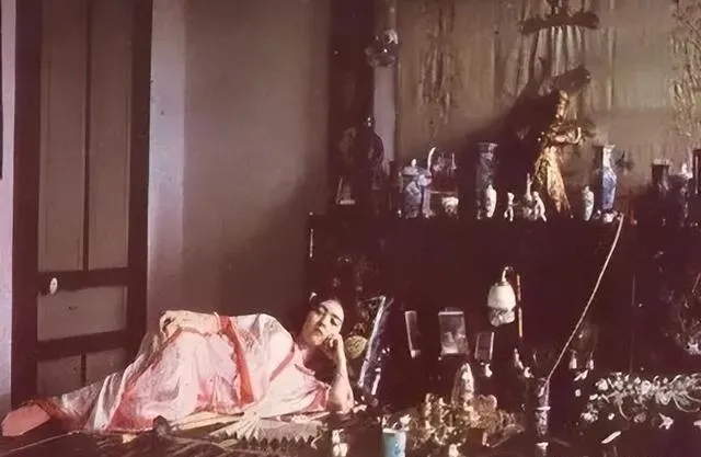 案上摆的是青花罐和台钟,床塌前堆满小摆件,女主人斜倚着,长烟嘴搁在指尖,灯影一晃,珠串跟着晃,这种讲究叫过法,不是每家学得来。